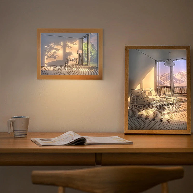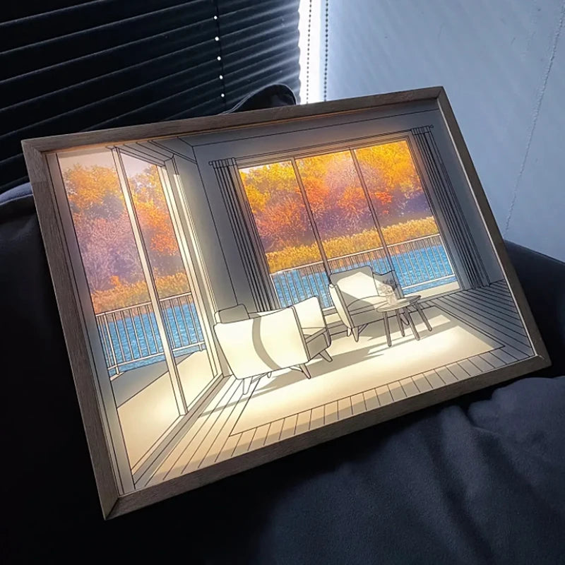 Sumérgete en el fascinante brillo de nuestro Cuadro de Arte Iluminado. Con su luz del sol simulada y su diseño contemporáneo, este cuadro cautiva los sentidos y crea una atmósfera acogedora.