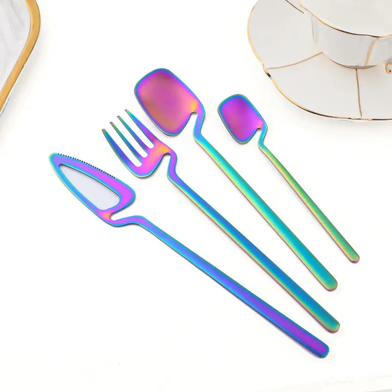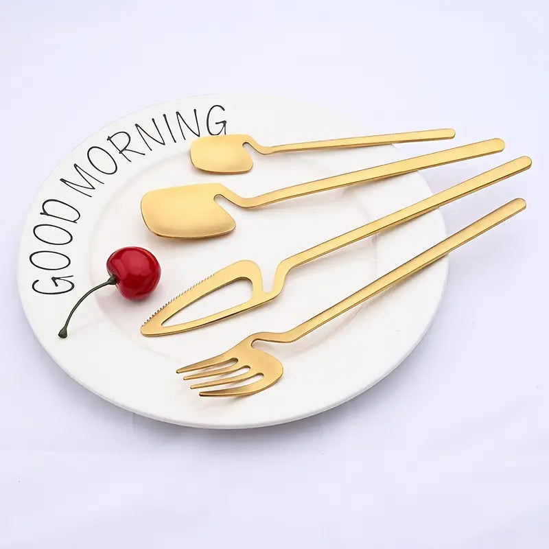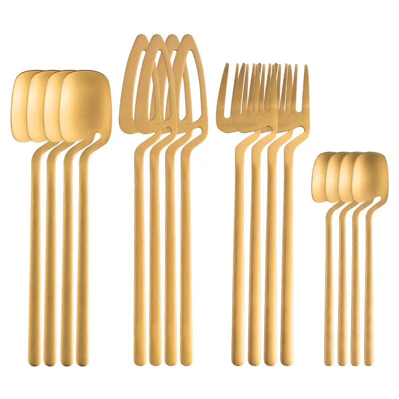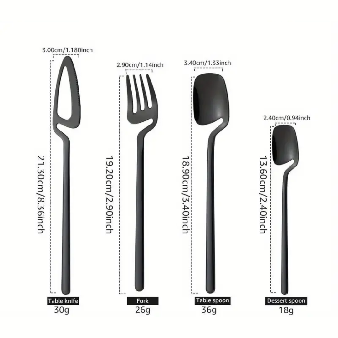 Consta de 4 cuchillos para la cena, 4 tenedores para la cena, 4 cucharas para la cena, 4 cucharillas con un aspecto lujoso y elegante para adaptarse a cualquier ocasión.