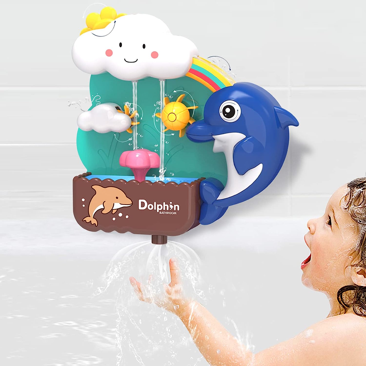 El juguete para el baño atrae fácilmente la atención de los niños, el agua que fluye, los engranajes giratorios y las lindas formas de delfines hacen que bañarse sea divertido