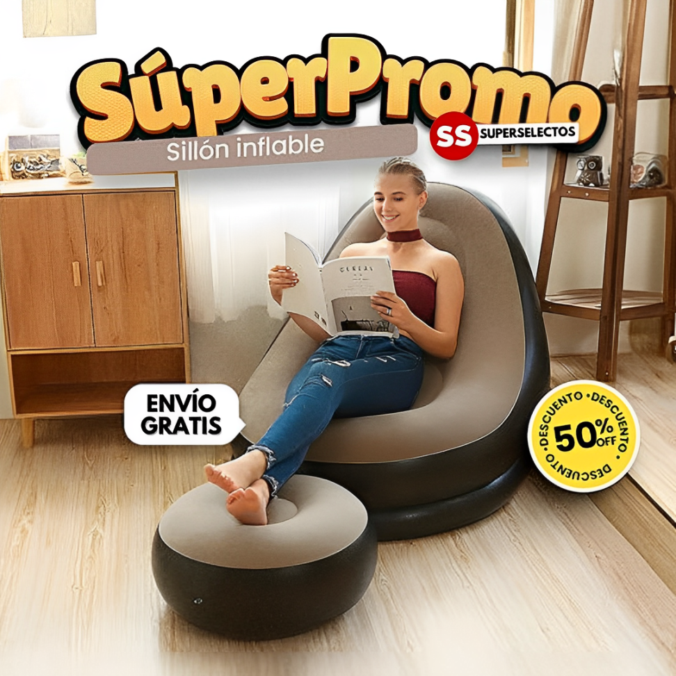 Sofá Inflable Puff + Reposapies | 50% De Descuento + Envío Gratis