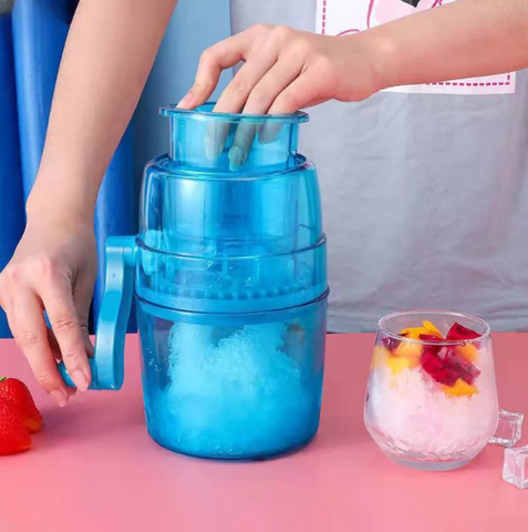 Es super sencillo, simplemente: retira la tapa, coloca los cubitos de hielo y gira la manivela para triturar el hielo. Y LISTO, DISFRUTA MÁS MOMENTOS EN FAMILIA!